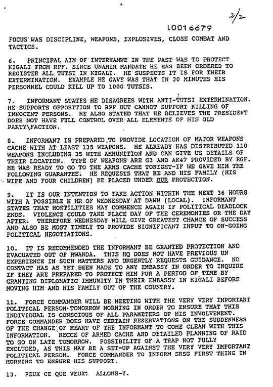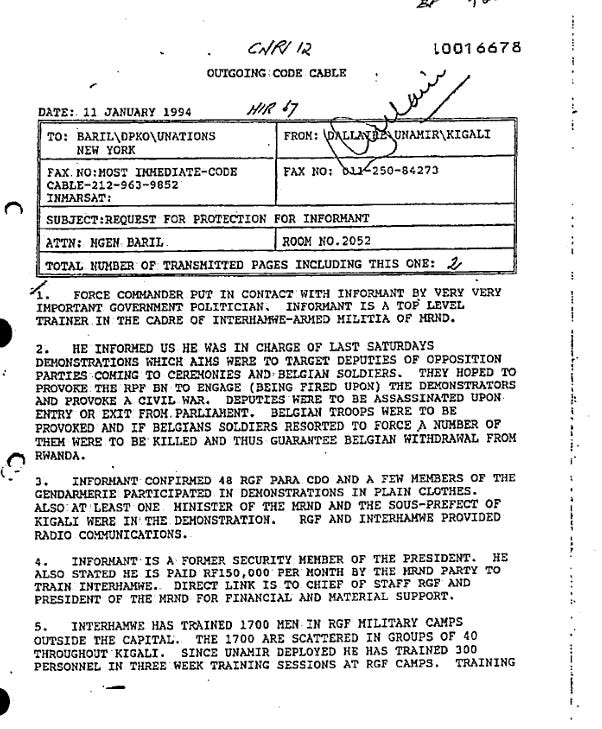 The international community knew what was happening and did next to nothing. The United States, still stung by the Black Hawk Down disaster in Somalia, explicitly avoided using the word “genocide” — because the 1948 Genocide Convention would have required action. The UN had peacekeeping forces in Rwanda; their commander, Canadian General Roméo Dallaire, sent a famous “genocide fax” to UN headquarters in January 1994 warning of the planned extermination campaign. He was told to stand down and not to act on the intelligence. Ten Belgian peacekeepers were tortured and murdered in the opening days; Belgium then withdrew its forces entirely.