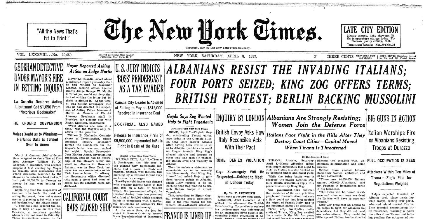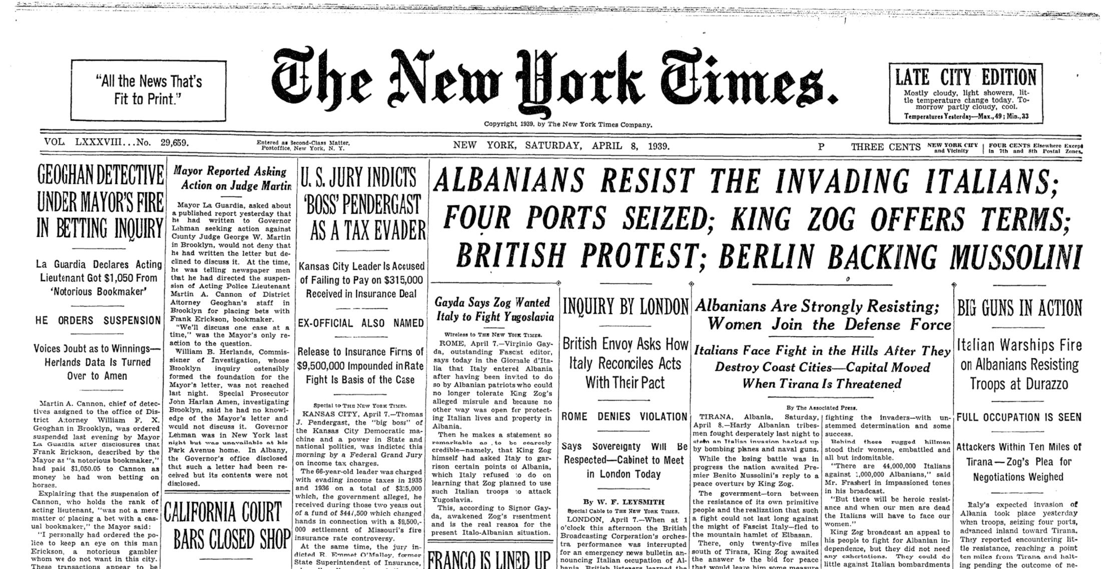 The seizure of Albania was a critical rehearsal for the broader catastrophe of World War II — a brazen act of aggression on Good Friday that drew only weak protests from Britain and France, who were exhausted from appeasing Hitler.